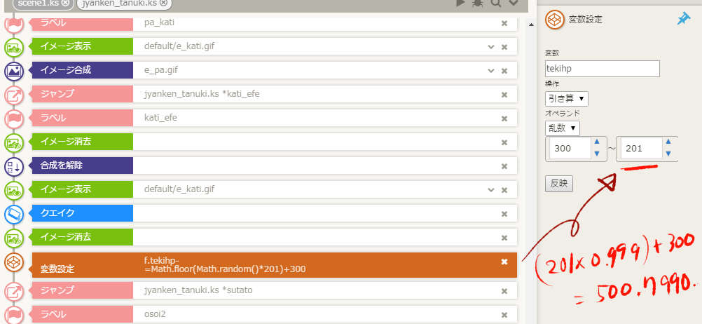 実はティラノスクリプトの乱数設定は